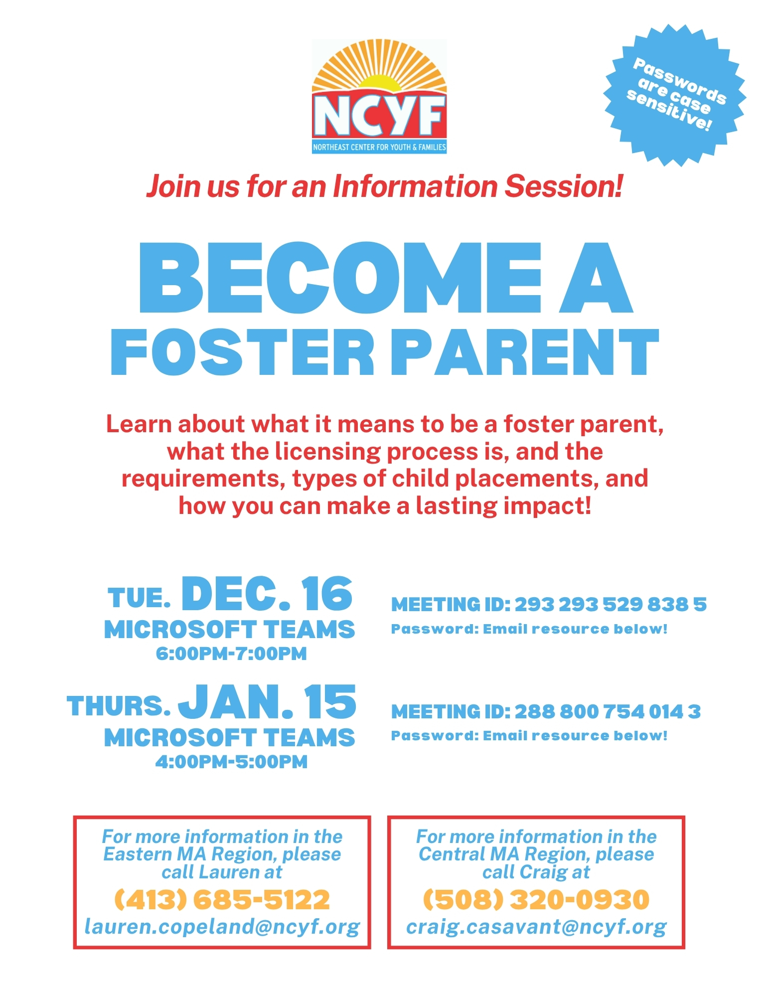 Become a Foster Parent Info Sessions - December and January